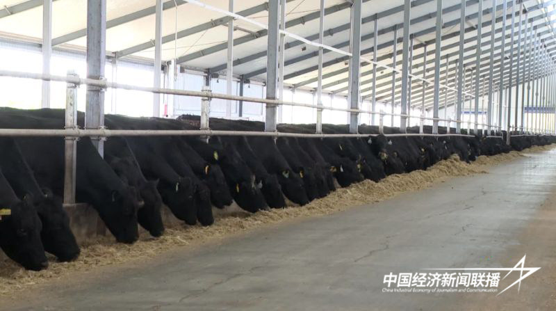 齐齐哈尔市依安县国牛牧业偌大的养殖场上,一排排现代化牛舍整齐排列。养殖区是智能化的饲喂系统。每天,工作人员都用饲料车将精准配比好的饲料投放到牛舍中,每一份营养都经过科学计算,确保安格斯牛获得最佳生长所需。