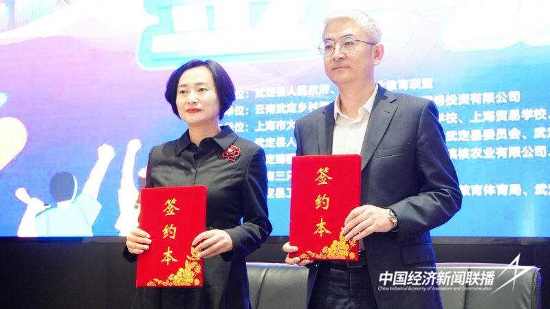 致辞结束后,活动进入合作签约环节。首先,嘉定工业区党工委书记、管委会常务副主任李超与武定县委副书记、县人民政府县长沈海燕共同上台,签署嘉定工业区管委会与武定县人民政府合作协议,双方将依托嘉定工业区在线新经济领域优势,进一步深化沪滇协作。紧接着,云南省广电网络投资有限公司副总经理王鸿川与沈海燕县长签署合作协议,公司将以“广电网络+”技术优势,为武定新媒体直播电商发展提供坚实支撑。