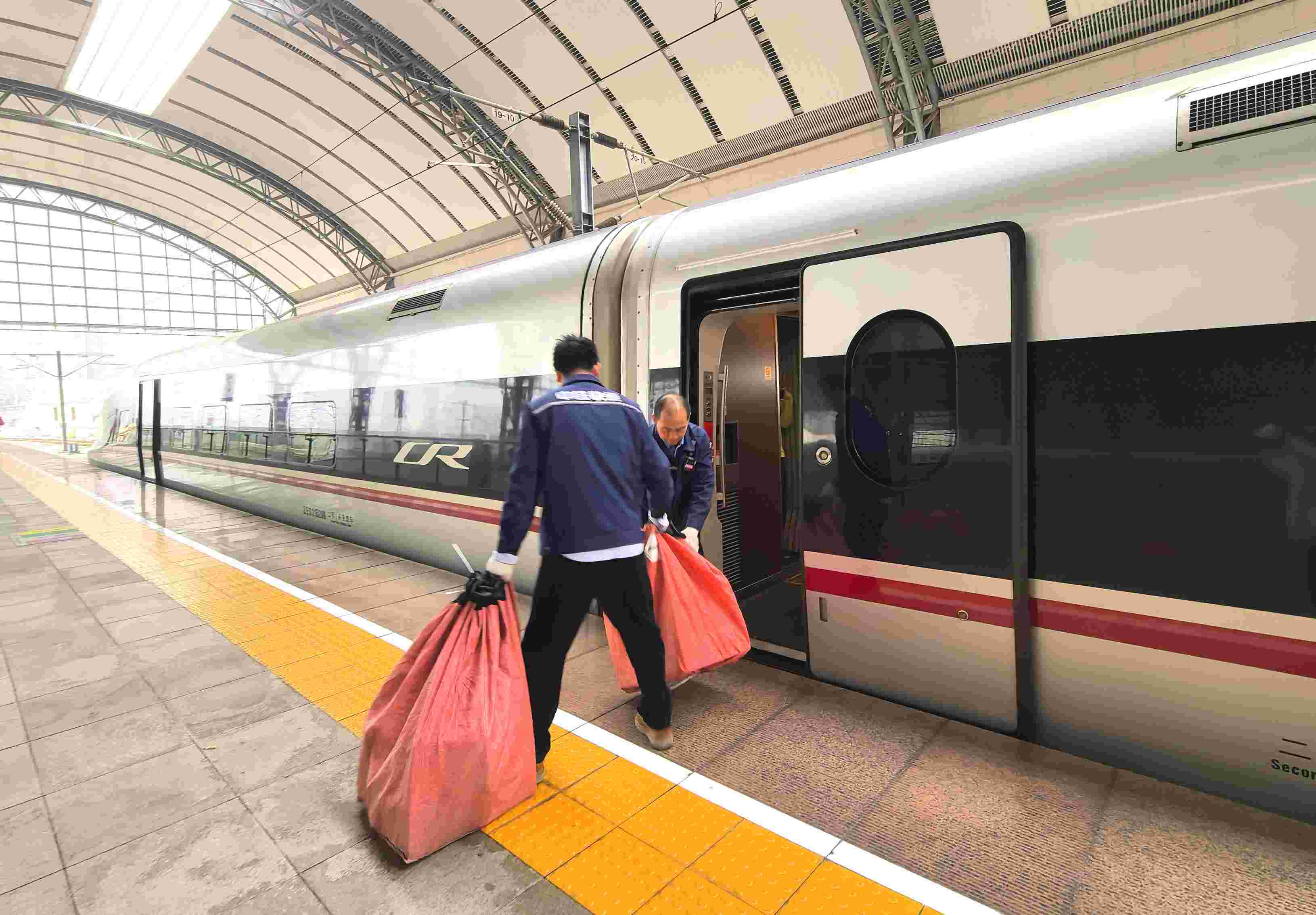 今天上午8时57分,G3463次列车装载日用品、配件、土特产多个品类、总重达2吨快递物资,从汉口站驶出,一路飞驰奔向成都东站。记者从中国铁路武汉局集团有限公司(以下简称武铁)获悉,11月1日,“双11”网购高峰期铁路快运服务正式启动。