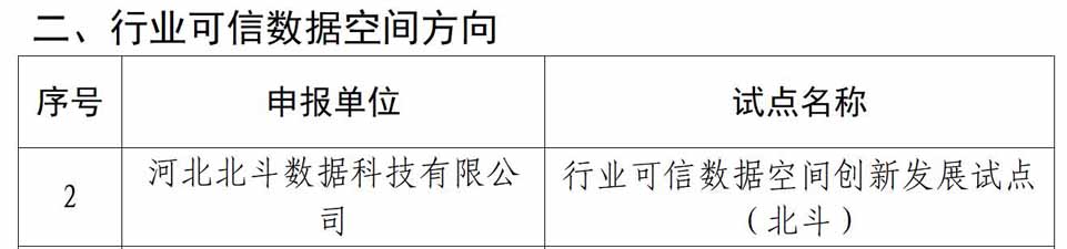 近日,河北省数据和政务服务局正式公示了“河北省2025年可信数据空间创新发展试点项目名单”,河北交投集团空天信息公司所属河北北斗数据公司申报的行业可信数据空间创新发展试点(北斗),凭借在数据技术领域的创新实力与行业影响力,成功入选该试点名单。