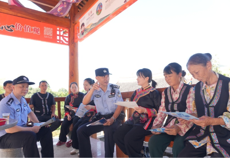 在民族团结宣传现场,民警与畲族长者围坐“文化廊亭”,听老人讲述金斗洋村各族群众互帮互助的历史故事——从早年汉族村民帮畲族同胞修缮畲宅,到如今畲族乡亲带领各族邻居发展特色种植,一个个鲜活事例让“各民族像石榴籽一样紧紧抱在一起”的理念愈发深刻。