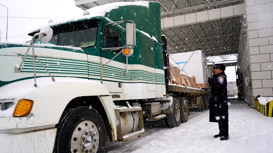 2月5日上午,正值公路口岸出入境高峰时段,出入境客流、货流较平日显著增加,暴雪天气导致公路能见度急剧下降,部分路段积雪结冰,通关车辆行进缓慢。绥芬河边检站以雪为令,加强与海关、公路运输等部门的联动协调,实时通报天气及通关信息,增派警力前置引导,采用“分段放行、分批查验”等方式,加快车辆验放速度,减少旅客和货车在严寒中的等待时间。