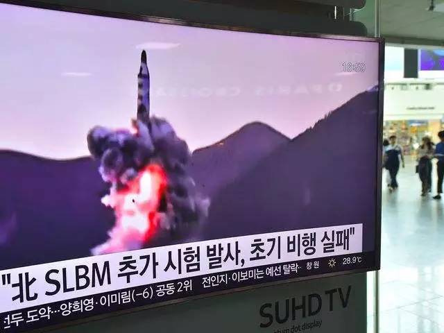 7月9日,韩国首都首尔一座火车站内,电视屏幕播放着朝鲜发射潜射导弹新闻。