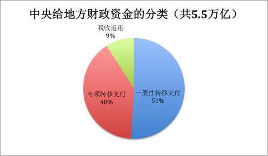 5.5万亿是怎么花出去的?分三个类别,第一类是一般性转移支付,这笔资金是2.8万亿。第二类是专项转移支付,大约是2.2万亿。第三类是税收返还,大约是5千亿元。