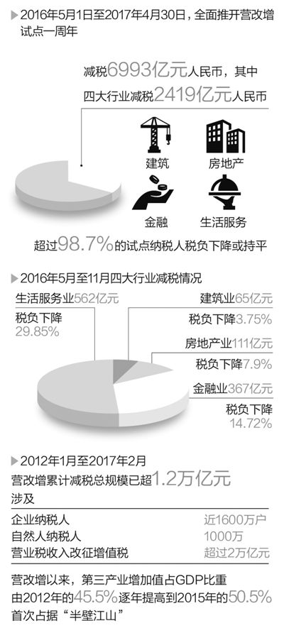 其实,为了最大限度让试点纳税人得到实惠,国家税务总局一开始就紧盯试点企业税负变化情况。建筑、房地产、金融和生活服务四大行业细分成26个小行业,从总局到区县级,层层成立专门工作团队,做好税负分析。