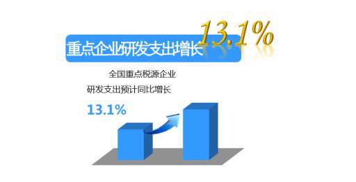 八:重点税源企业研发支出增长13.1%,创新发展形势持续向好。2020年,受益于研发费用加计扣除等税收优惠政策,全国重点税源企业研发支出预计同比增长13.1%,其中,制造业增长9.6%,软件和信息技术服务业增长25.3%,均保持向好的创新发展势头。享受研发费用加计扣除政策的33万户企业购进高技术设备和高技术服务金额同比增长15.8%。“十三五”时期,重点税源企业研发支出保持两位数以上的较快增速,为我国经济高质量发展增添了强大后劲。
