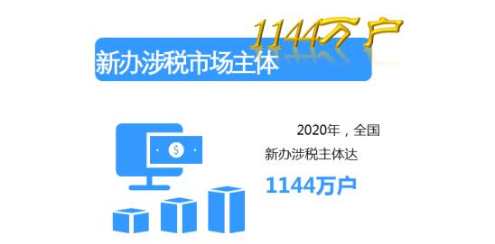 九:全年新办涉税市场主体1144万户,高于前两年水平,市场活力稳步增强。2020年,全国新办涉税市场主体达到1144万户,比2019年增长10.1%,显示国家支持市场主体纾困解难、健康发展的政策措施落地见效,市场活力快速恢复。“十三五”时期,全国新办涉税市场主体累计达5745万户,其中2020年新办数量明显高于2018、2019年。