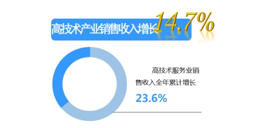 七:高技术产业销售收入增长14.7%,新动能发展潜力加速释放。2020年,全国高技术产业保持较快增长态势,销售收入同比增长14.7%,增速快于全国企业平均水平8.7个百分点。其中,以信息服务、电子商务为代表的高技术服务业,自4月份以来,连续9个月同比增幅超过20%,全年累计增长23.6%,显示新动能发展潜力加速释放,新经济持续茁壮成长。