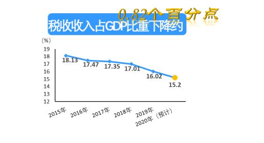 五:税收收入占GDP比重下降约0.82个百分点,企业税费负担进一步减轻。2020年,随着支持疫情防控和经济社会发展减税政策落地,我国一般公共预算收入中税收收入占GDP比重预计降至15.2%左右,较2019年继续回落约0.82个百分点。