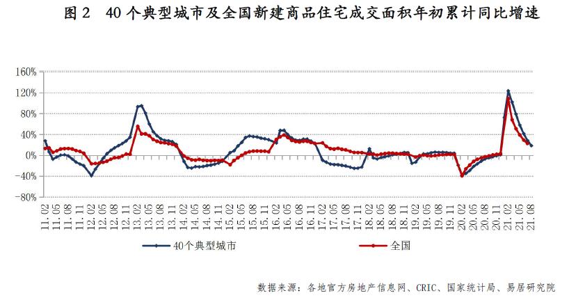 报告预计,未来几个月该曲线还将继续下行。9月40城新建商品住宅成交面积近6个月移动平均同比增速将由正转负。