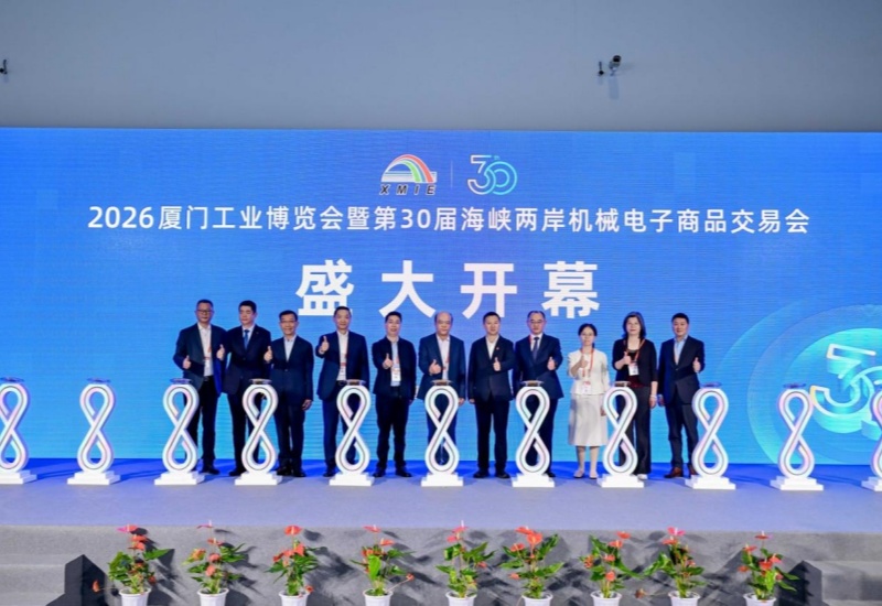 中经联播讯(庄秋风 马海彤 应晓丹)4月9日,鹭岛厦门再次成为工业制造圈瞩目的焦点——2026厦门工业博览会暨第30届海峡两岸机械电子商品交易会(以下简称“厦门工博会”)在厦门国际博览中心盛大开幕。中国机械工业联合会党委常委、副会长李奇,中国机电产品进出口商会副会长白雪峰,商务部直属机关党委原常务副书记、中国机电商会台北办事处原主任李荣民,台湾区电机电子工业同业公会副理事长胡惠森,东浩兰生(集团)有限公司党委副书记倪瑾,东浩兰生会展集团股份有限公司总裁毕培文,汉诺威米兰(上海)展览有限公司董事总经理刘国良,厦门市会议展览促进中心主任张建斌,厦门市工业和信息化局党组成员刘婷,福安市政府党组成员、副市长连坚,厦门海翼集团有限公司总经理金中权,厦门国贸会展集团有限公司总经理刘旭东等嘉宾共同出席开幕式。