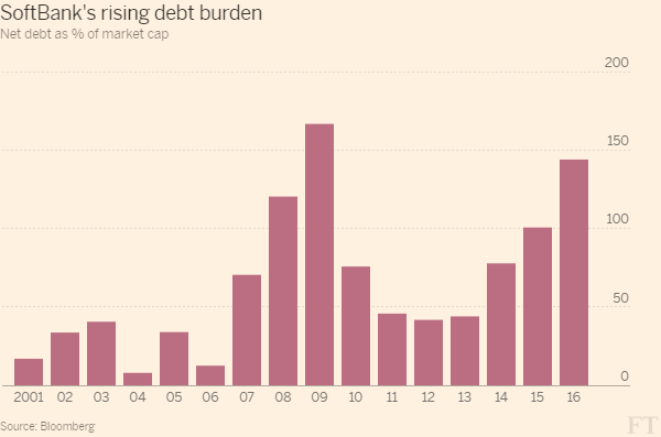 这场看似不太可能的联姻源于沙特9月初对日本进行国事访问期间孙正义的主动争取。考虑到自己的抱负之大及自己对公开市场投资者的失望(孙正义感到他们要理解他宏大的“疯狂的想法”所需要的时间太长),孙正义此前数月都在构思一种创新融资安排。软银对ARM的收购因为该公司需要将部分持股变现,以便为该交易提供资金而节奏变慢,该交易也使软银的净负债上升至惊人的1050亿美元。
