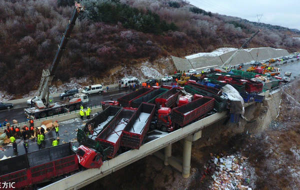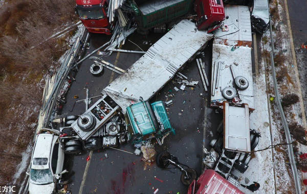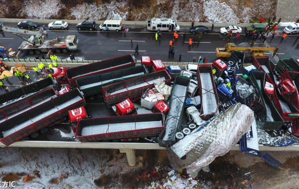 据央广网22日报道,受雨雪天气影响,11月21日上午9时许,京昆高速平阳段太原方向65KM+500M处,发生多车先后相撞交通事故。截至晚21时,事故造成17人死亡,37人受伤,56辆车辆受损。