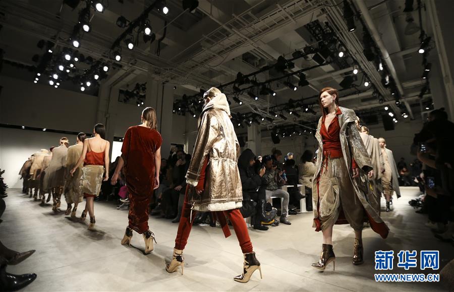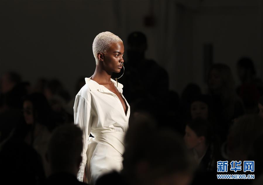 2月9日,模特在美国纽约时装周首场时装发布会上展示设计师Nicholas K的作品。当天,2017纽约时装周开幕,其间的数十场发布会将展示来自世界各地设计师的时装作品。 新华社记者王迎 摄