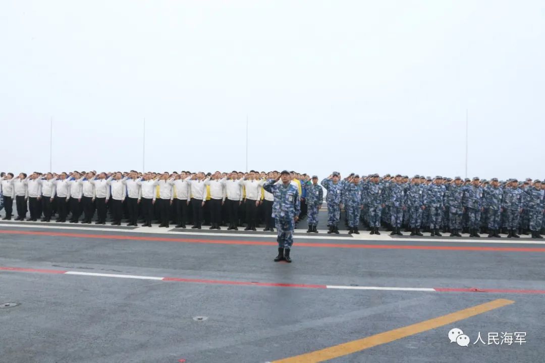 位飞行甲板隆重举行升国旗仪式