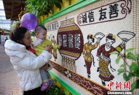 2月2日,在长春举行的第七届吉林冬季农业博览会上,各类农作物纷纷“变身”,寓意吉祥的年画由五谷杂粮粘贴而成,苦苣、红甜菜、金叶甜菜等则组合成了逼真的“蔬菜汽车”,为冬日的长春带来浓浓春意和年味,也为前来参观的市民带来多重惊喜,引来市民拍照留念。