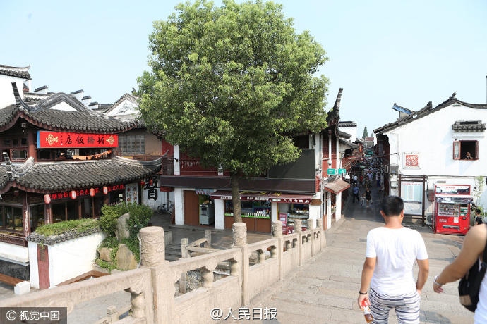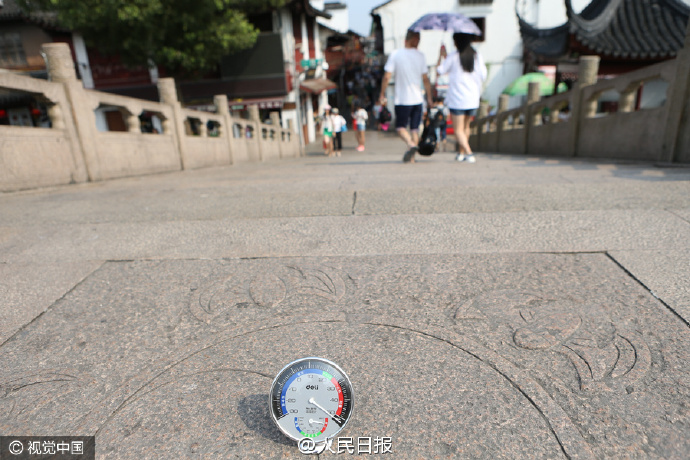 @人民日报:【上海:温度计太阳下10分钟“爆表”破50】2016年7月24日,上海古镇七宝老街,平日里人头攒动的老街,游人寥寥无几。刻度为50的温度计放在石桥上,10分钟左右,温度显示直接“爆表”。