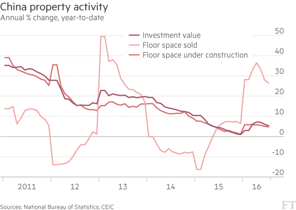 但开发商的建筑活动——带来对钢铁、水泥和贱金属等工厂产品的需求——呈现不同的景象。房地产投资增速连续4个月放缓,7月降到5.3%。