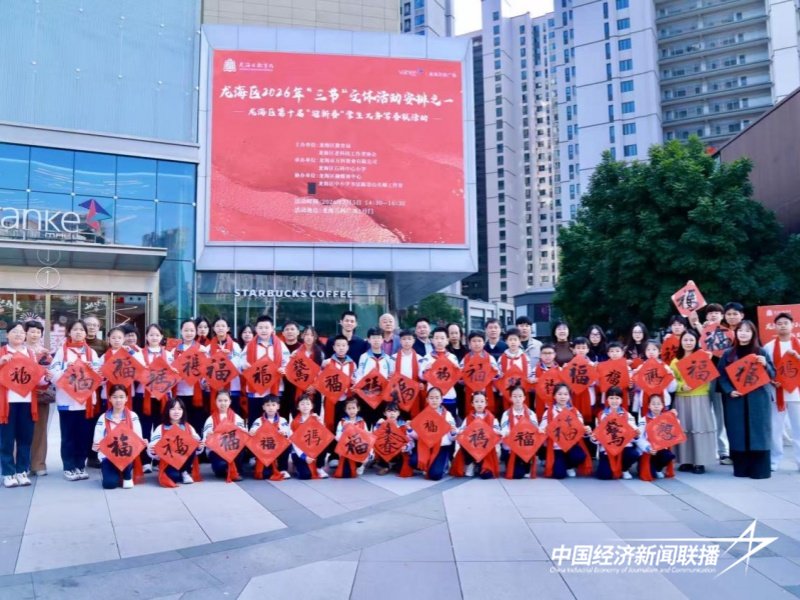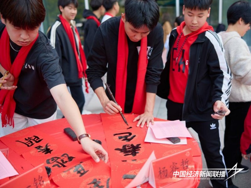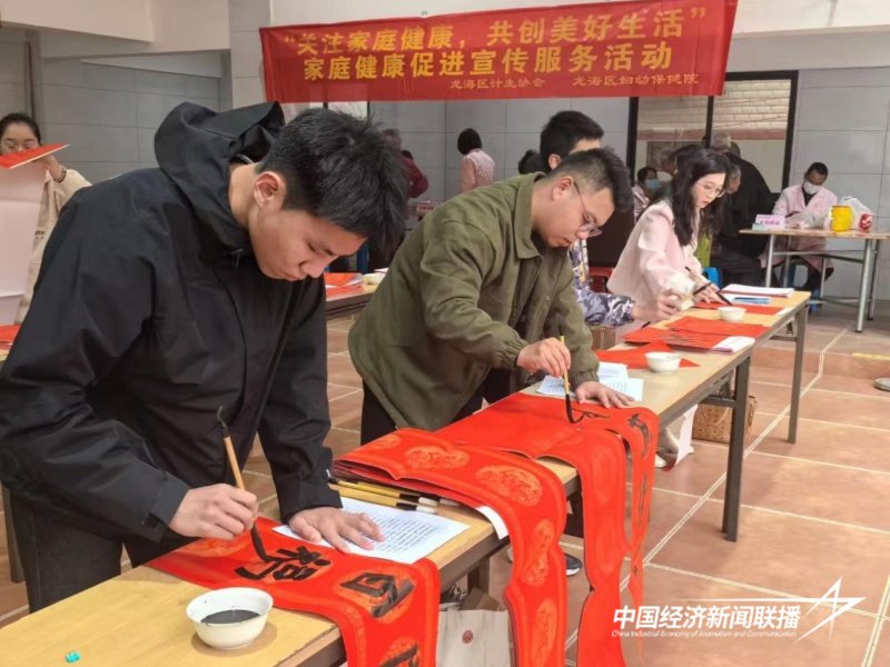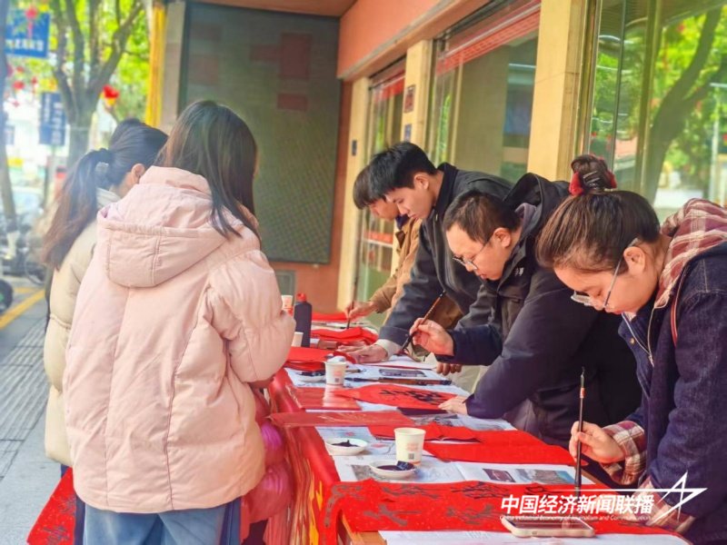 中经联播讯(林建辉 马海彤 通讯员 林谦能 黄秀鑫)丙午马年春节前夕,福建省漳州市龙海区“送万福进万家”义务写春联志愿服务活动火热开展。陕西学前师范学院美术学院书法系2023级学生、漳州市书法家协会会员、龙海区青年书画家协会理事杨睿哲放弃寒假休息时间,连续参与多场公益写福活动,用笔墨书写祝福,以行动传承中华优秀传统文化。