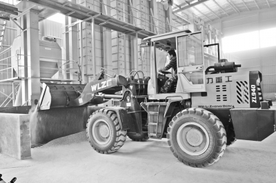 近期,由于降雨频繁,对新麦晾晒入库造成影响。江苏盐城大丰区加大对种粮户、家庭农场、企业的粮食烘干服务,确保新麦保质保量入库。图为工人操作铲车将麦子送入烘干设备处理。 董汝涛摄