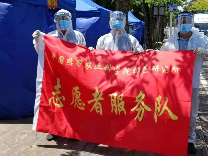 中国热科院椰子所志愿者服务队由在职中共党员、入党积极分子和共青团员组成,现有成员49人,他们将在所党委的领导下,充分发挥党员先锋队作用,持续深入开展疫情防控等志愿服务,积极助力文昌经济社会高质量发展。