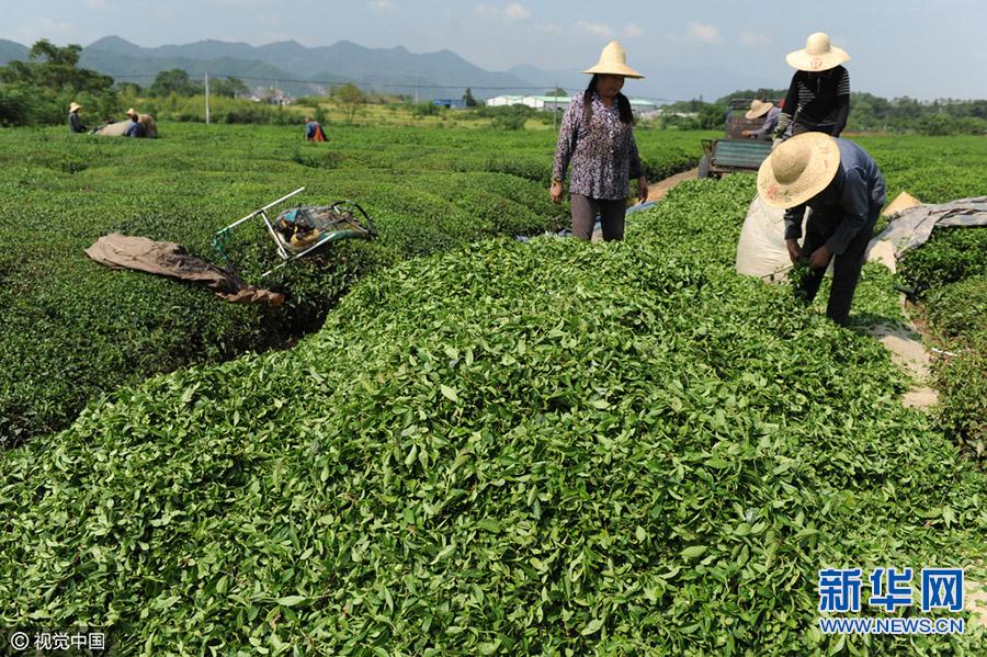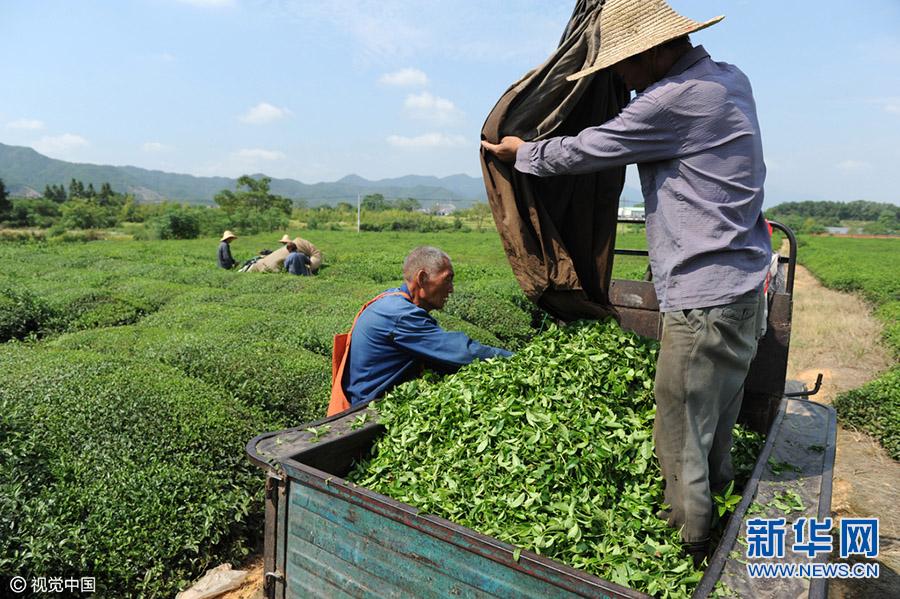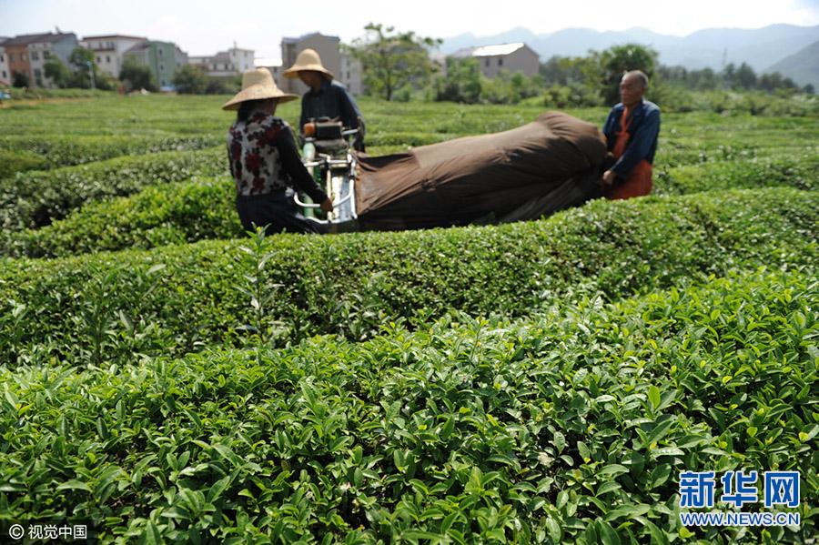 9月8日,浙江省东阳市城东街道(良种场附近)的茶园里采茶工在忙着采收秋茶。秋天是收获的季节,也是茶叶丰收的日子,连日来,浙江省东阳市各地的茶园里机声隆隆,种植户雇请采茶工用采茶机采收今年最后一批茶叶,加工成“珠茶”销售增加收益,也为来年的茶树健康成长提供了保障。