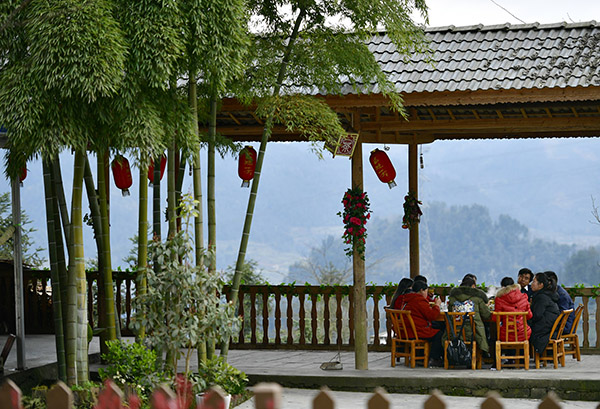3月23日,在湖北省宣恩县伍家台村,游客在农家乐餐馆就餐。