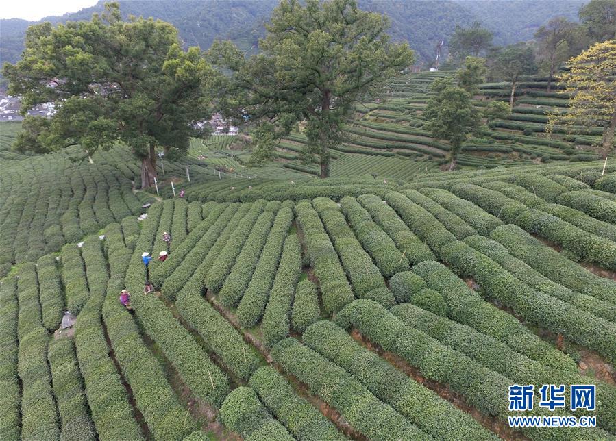 近日,在浙江杭州西湖龙井茶原产地之一的梅家坞村,采茶工趁着晴好天气,忙着采摘西湖龙井茶。由于受前期持续阴雨天气影响,今年西湖龙井茶全面开采期比往年有所推迟。