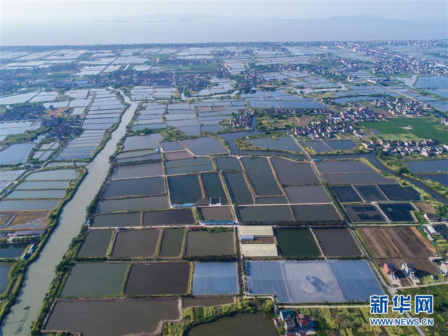 这是5月9日航拍的渔大哥水产养殖专业合作社的千亩生态养殖基地。近两年来,随着浙江湖州市各乡镇水体治理工作推进,当地水质得到不断改善,水产养殖户因此受益。湖州织里镇上林村的渔大哥水产养殖专业合作社52名成员及周边300多户抱团养殖户利用优质水源,将经营重点逐步由鳜鱼养殖转向对水质要求更高的鳜鱼苗种繁育,并于2016年推行鳜鱼设施化养殖模式,大大提高了单位水体产量,闯出一条“技术养鱼”“生态养鱼”的转型升级之路。新华社记者 徐昱 摄