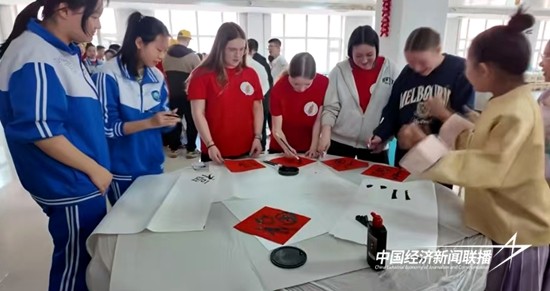 在书法桌前,各国的青少年们手握毛笔,写下祝福,在墨香氤氲间感受汉字之美;包饺子环节更是热闹非凡,揉面、擀皮、捏褶,中外青少年分工合作,其乐融融,不一会儿,香喷喷的、具有中国千年文化底蕴的饺子摆在了学生们面前。