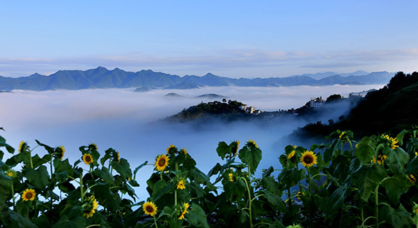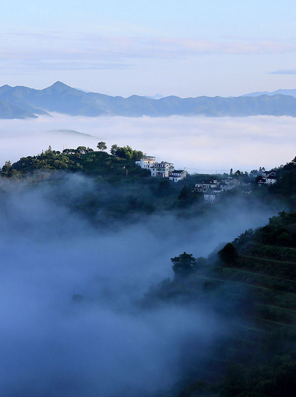 当日,安徽黄山石潭风景区雨后初晴,出现了壮观的云海景观,徽派民居若隐若现,美轮美奂。