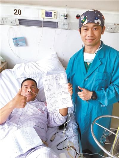 “根据聋哑人的特征,把麻醉的过程简单地画出来,分为几个步骤,让他了解手术的过程,有个心理准备就不会太紧张了。”周一晚上,邱飞龙去探视病人时,把画给了病人。“我把画递给他看,他一边看一边点头,还微微一笑。”看完手绘画,病人还冲邱飞龙伸出大拇指,“狠狠地”比了一个赞。邱飞龙还回忆说,手术当天,当病人被推进手术室时,又冲他笑了笑,“我知道他认出我了”。