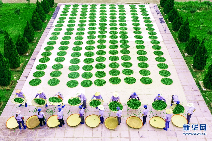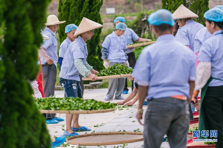 采制铁观音比一般品种要求严格而精细,其工序:鲜叶→晾青→晒青→做青→炒青→初揉→初烘→复揉→烘干。新华网 王雄 摄 飞手 林楷煜