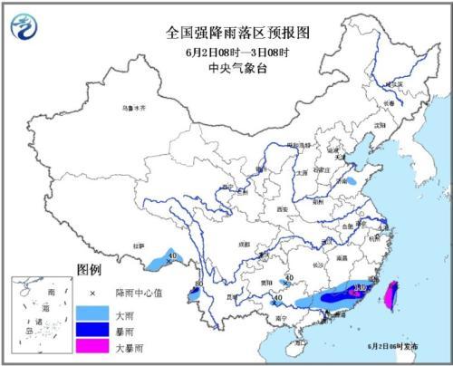 图1 全国强降雨落区预报图(6月2日08时-3日08时)