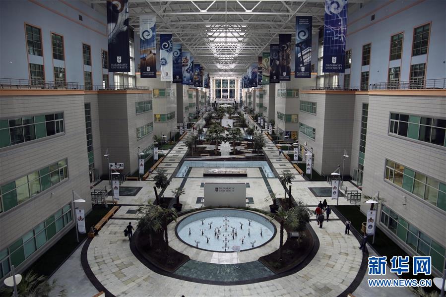 位于哈萨克斯坦首都阿斯塔纳的纳扎尔巴耶夫大学由哈萨克斯坦总统纳扎尔巴耶夫倡议创立,是哈萨克斯坦国内具影响力的高等学府之一,设有工程学院、科学技术学院和社会人文学院等院系,旨在培养具有国际水准的创新型人才。这是纳扎尔巴耶夫大学校门(5月23日摄)。 新华社发(奥斯帕诺夫 摄)