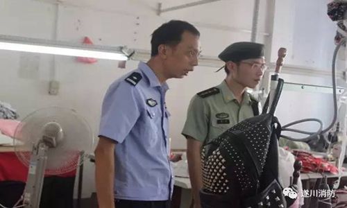 大队监督执法人员针对“三合一”场所特点,重点对各制衣厂的消防器材配置情况、安全出口和疏散通道、电器线路敷设、灭火器、应急照明装置等情况进行了详细的检查,详细说明“三合一”场所潜在的隐患和发生火灾事故后的危害,要求负责人和员工不断提升消防安全意识,掌握初期火灾的扑救方法和火灾逃生知识。