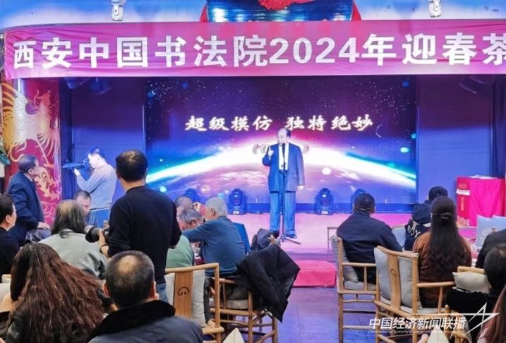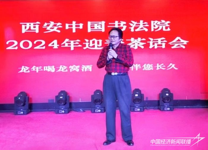 中经联播讯(魏文博)玉兔呈祥辞旧岁,金龙献瑞迎新春。1月26日中午,西安中国书法院2024年迎春茶话会在西安南二环西段“品艺园”王木椟剧场举办。茶话会由陕西广播电视台主持人禾雨主持。