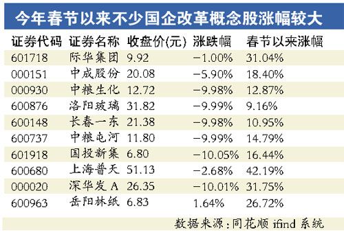 值得注意的是,在十项改革试点公布前夕,国企改革主题在A股几乎独领风骚,际华集团、中成股份、上海普天等多数个股连续多日涨停,市场资金也大幅流入。不过,在利好兑现后,资金明显流出,板块个股周四大面积跌停。有机构人士就表示,市场调整才开始,股民不要着急补仓或抄底。