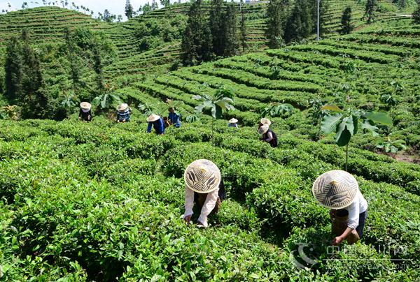 7月20日,雨后的忠路镇杨家坡空气清新,嘉润茶业有限公司的有机茶叶基地里,当地村民正在采摘夏茶。据统计,今年1至6月,利川全市茶叶产量达9200吨,其中名优茶1500吨,总产值达4.5亿元。