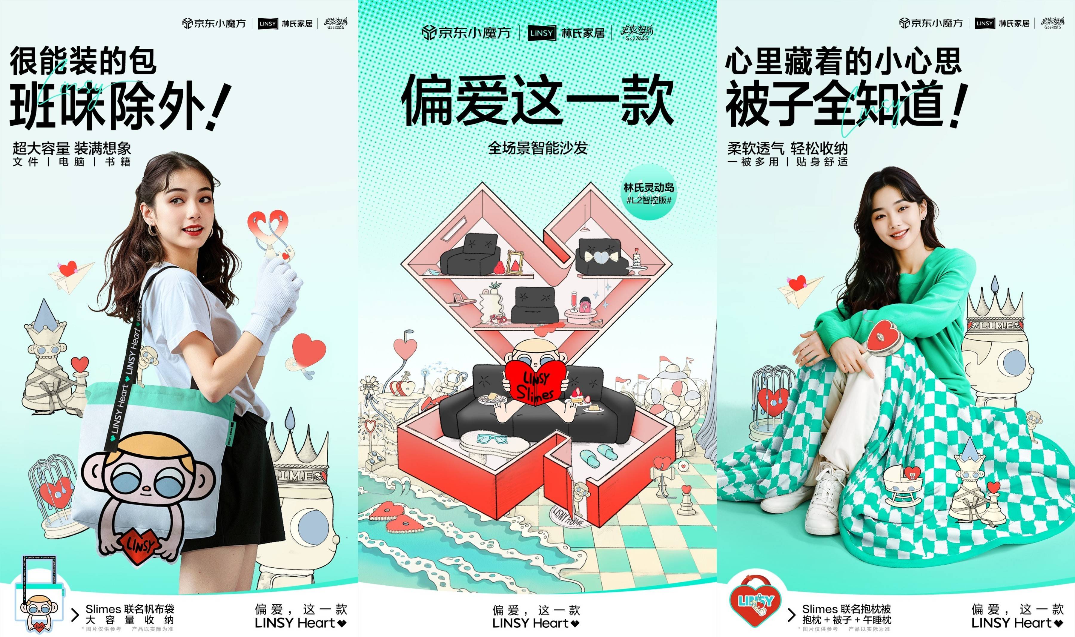 值得一提的是莱姆身上最显著的标志——一颗红心与林氏家居偏爱系列的“LINSY HEART”视觉元素相互呼应,这不仅是一种视觉上的融合,更是情感层面的深度连接,让“偏爱”不仅仅是一个口号,而是一种可触可感的生活方式。通过这次与莱姆这个超级IP的联名,林氏家居成功吸引了大量年轻消费者的关注与喜爱,而史莱姆斯的忠实粉丝被这份独特的情感链接所吸引,成为品牌新的拥趸,进而带动更广泛消费群体的关注与购买。