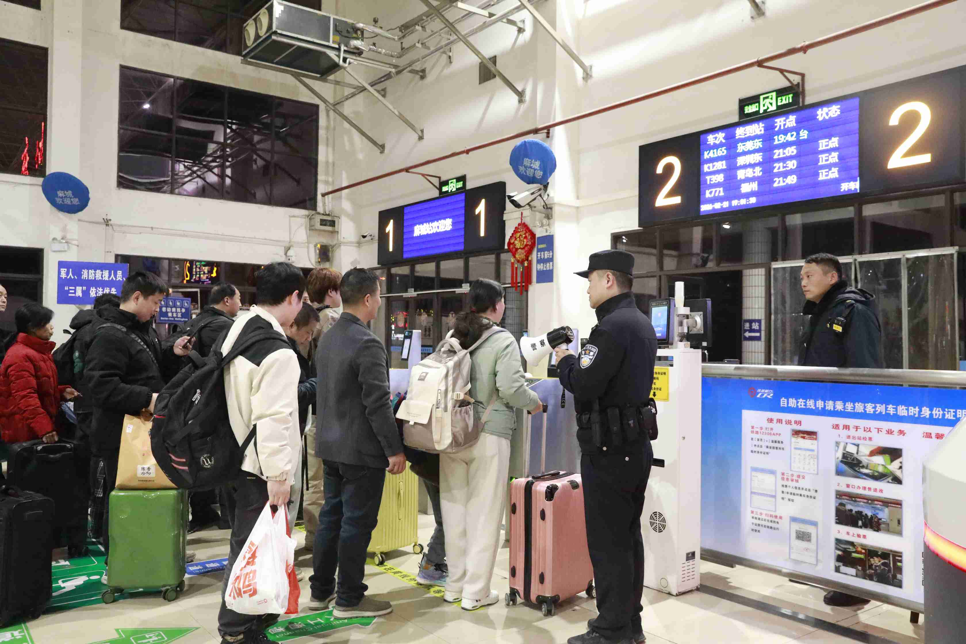 麻城车务段推出一系列便民服务举措。针对务工旅客行李多、体积大的特点,车站专门将列车安排在一站台停靠,实现检票闸机到乘车站台的“零距离”接驳,最大限度缩短旅客步行距离。候车室内设立了“务工人员候车专区”,配备饮用水、应急药品等物资;党团员突击队分工协作,在检票口、站台、车厢门口引导客流,协助搬运行李,耐心解答乘车疑问,为老幼病残孕重点旅客开辟绿色通道,提供全流程帮扶,让每一趟返岗之旅都踏实顺畅。
