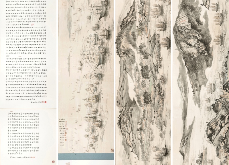 中经联播讯(林建辉 马海彤)近日,由福建省漳州市龙海区委宣传部、龙海区文联牵头,龙海区美术家协会8位画家历时近10个月精心创作的37米国画长卷《海丝万里 月港千帆》正式完成。
