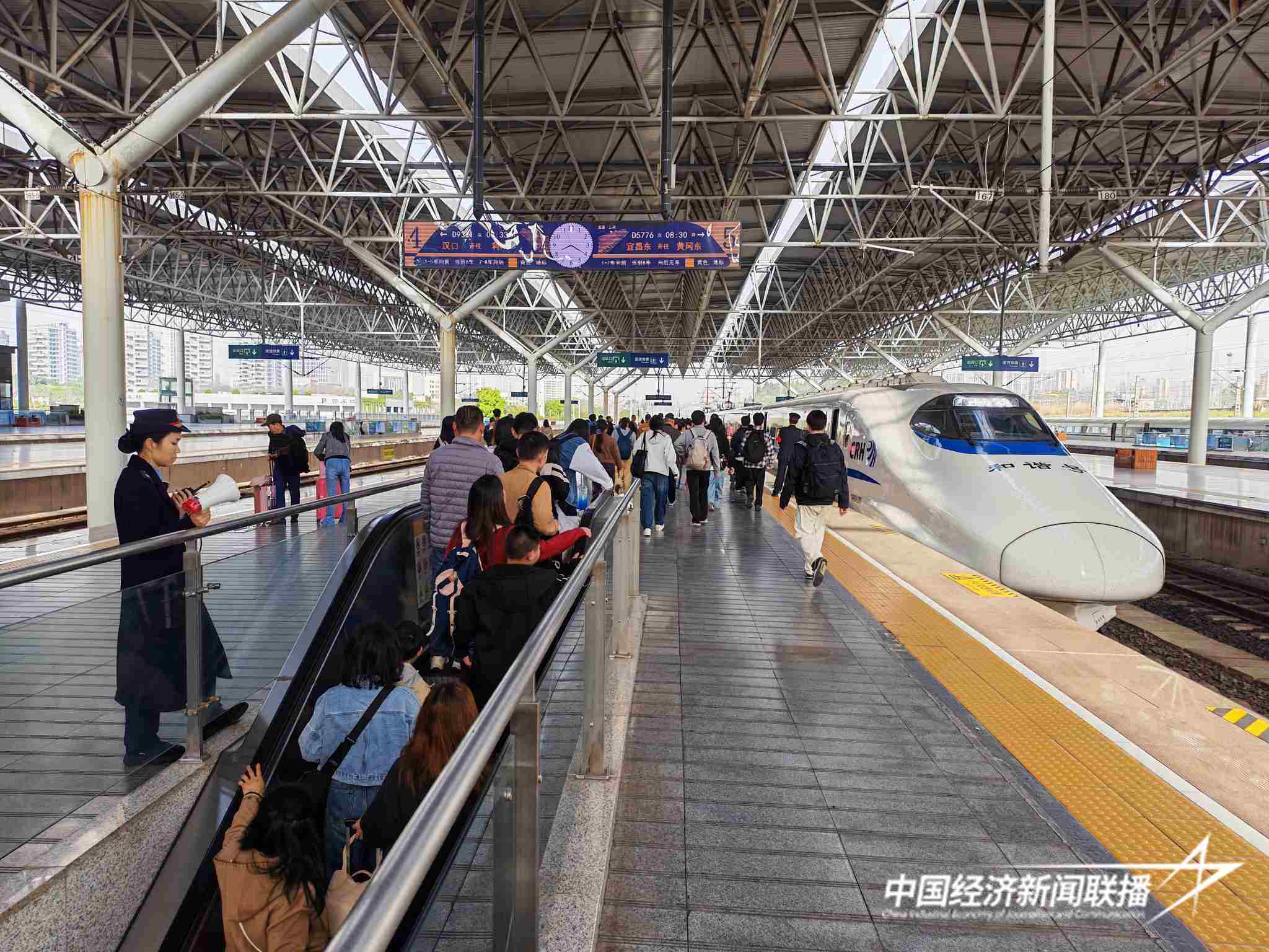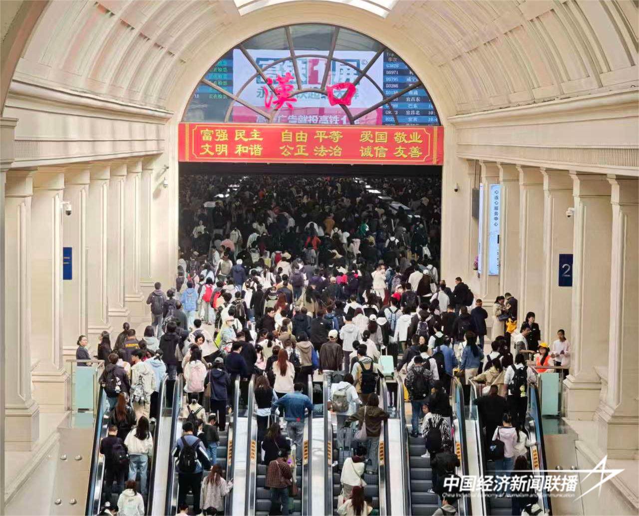 中经联播讯(通讯员武铁宣 宋萍 陈俊)今天是清明节假期第一天,铁路迎来旅客出行高峰,中国铁路武汉局集团有限公司(以下简称“武铁”)实行高峰线运行图,增开214列始发旅客列车,预计发送旅客105万人次左右,创同期历史新高,其中汉口预计发送旅客20.5万人次左右,也将创同期历史新高。