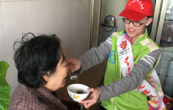 社区李岩患脑瘫,智力和正常人不一样,和姥姥相依为命,青少年志愿者为他们送上节日的祝福,希望他们过得更好,并将寄托浓浓的爱心汤圆送到他和姥姥手中时,李岩特别高兴,姥姥更是激动地落泪,直夸孩子们太懂事了!青少年志愿者把煮好的汤圆喂给姥姥,姥姥真是甜到了心里。最后,李岩为大家高歌一曲《母亲》!获得满堂喝彩!