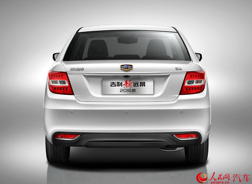 2016款远景在外观上做出了一些小调整。中网格栅样式变为目前吉利车型上最新的“涟漪”样式的回纹格栅,而保险杠的造型并未改动。在车尾部分,2016款吉利远景重新设计了尾灯造型,后保险杠形状经过了微调。
