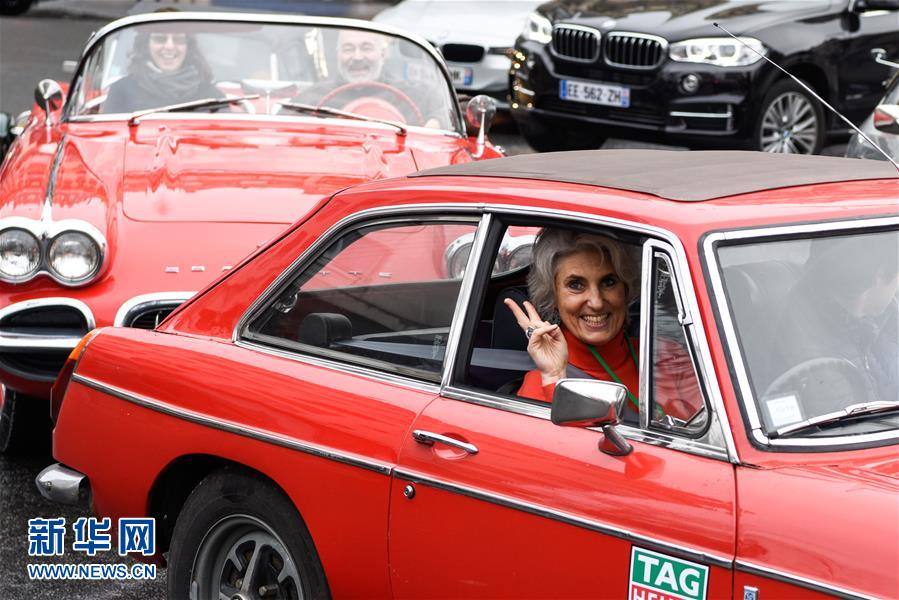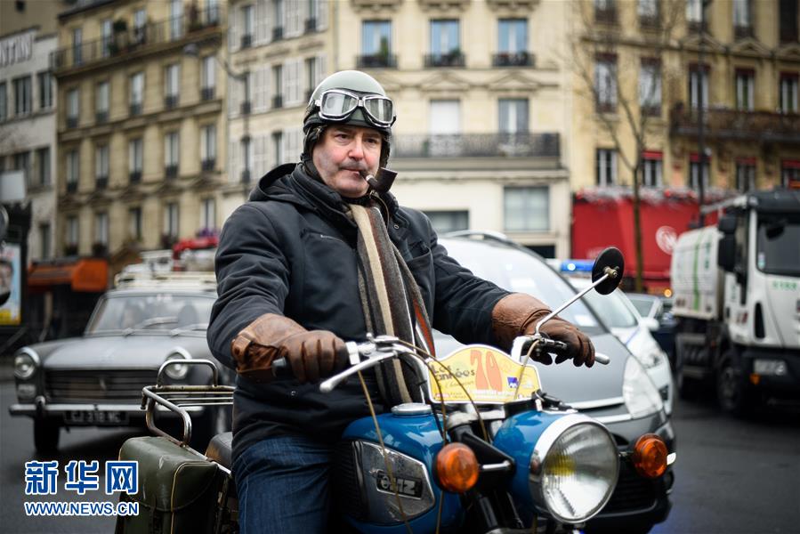 1月8日,老爷车驶过法国巴黎克利希广场。当日上午,700余辆轿车、公交车、摩托车、自行车等各式老爷车驶过巴黎的大街小巷,参加第17届老爷车穿越巴黎巡游活动。新华社记者陈益宸摄