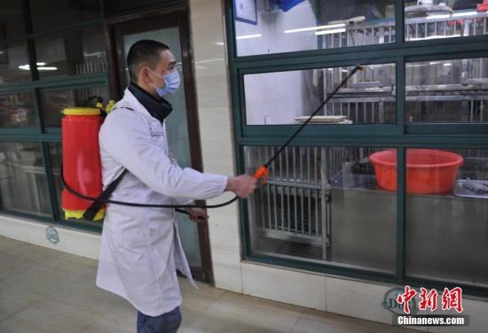 资料图:2月22日,江西省会南昌对全市所有活禽经营市场实行暂时休市,工作人员对市场内的所有摊位、笼舍进行清洁、消毒工作。 中新社记者 刘占昆 摄