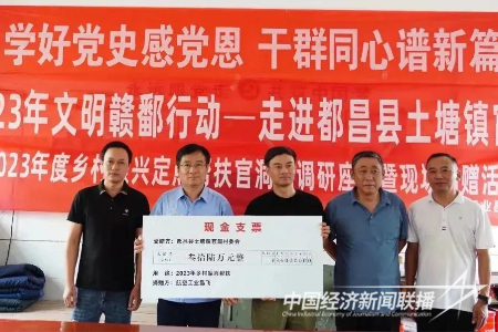 中经联播讯(金向友 庄秋风 通讯员 汤向伟 袁凯)9月20日,江西航空工业昌飞乡村振兴工作组来到江西省九江市都昌县土塘镇官洞村开展“2023年文明赣鄱行动 - 走进都昌县土塘镇官洞村暨乡村振兴定点帮扶现场调研捐赠活动”,以送文化、送服务、送资金的方式,助力帮扶点乡村振兴。