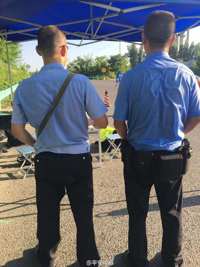 21日,成都市公安局官方微博@平安成都 发布两张照片,配文称“11时许,成都,城南高速治安卡点,过多的话都显苍白”。