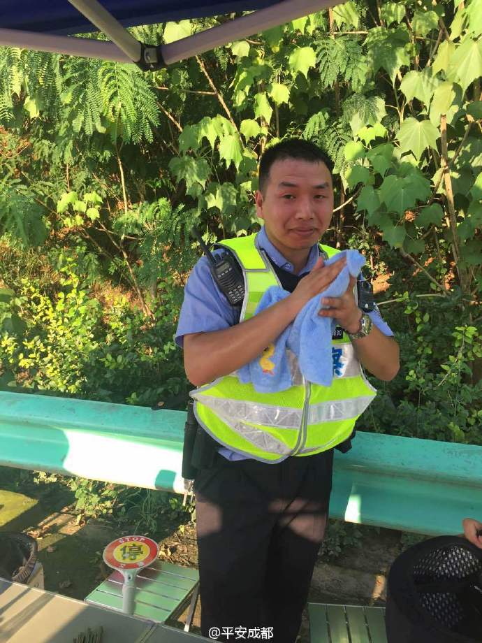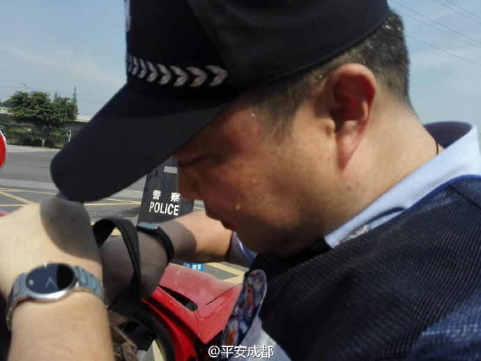 据华西都市报微博消息,2016年7月21日中午11点,成都某高速公路治安卡点的地表温度已接近50℃,一位执勤中的交警中暑晕倒。